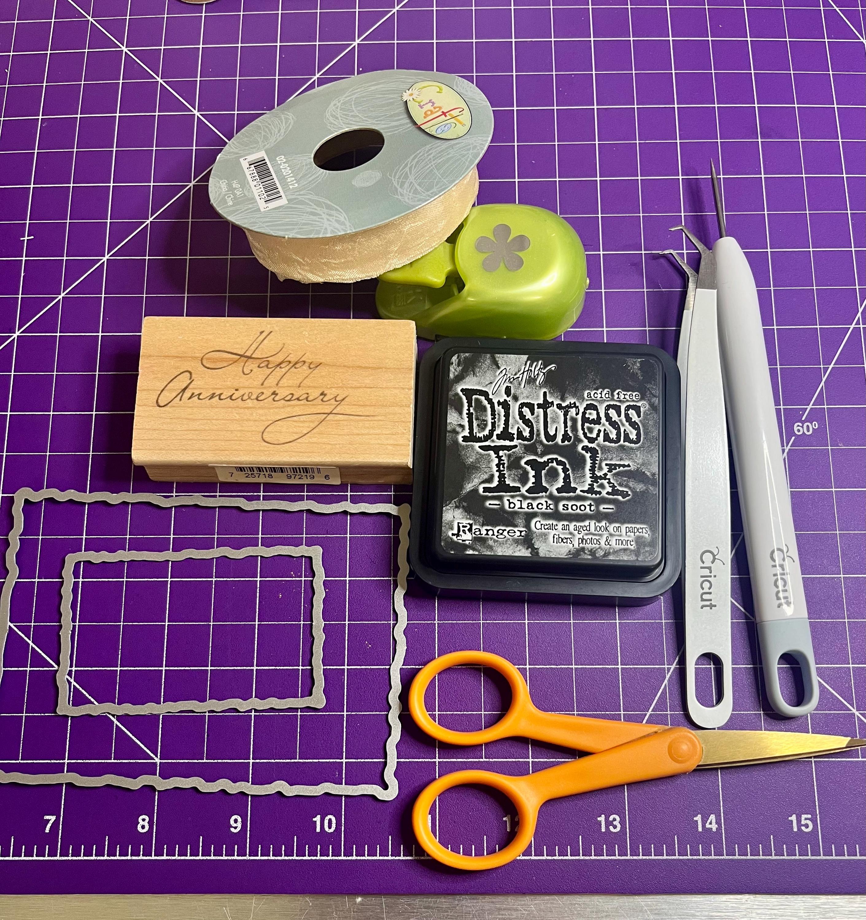 The sentiment Happy Anniversary and the edges of the smaller rectangle were done with distress ink colour black soot.🖤🤎