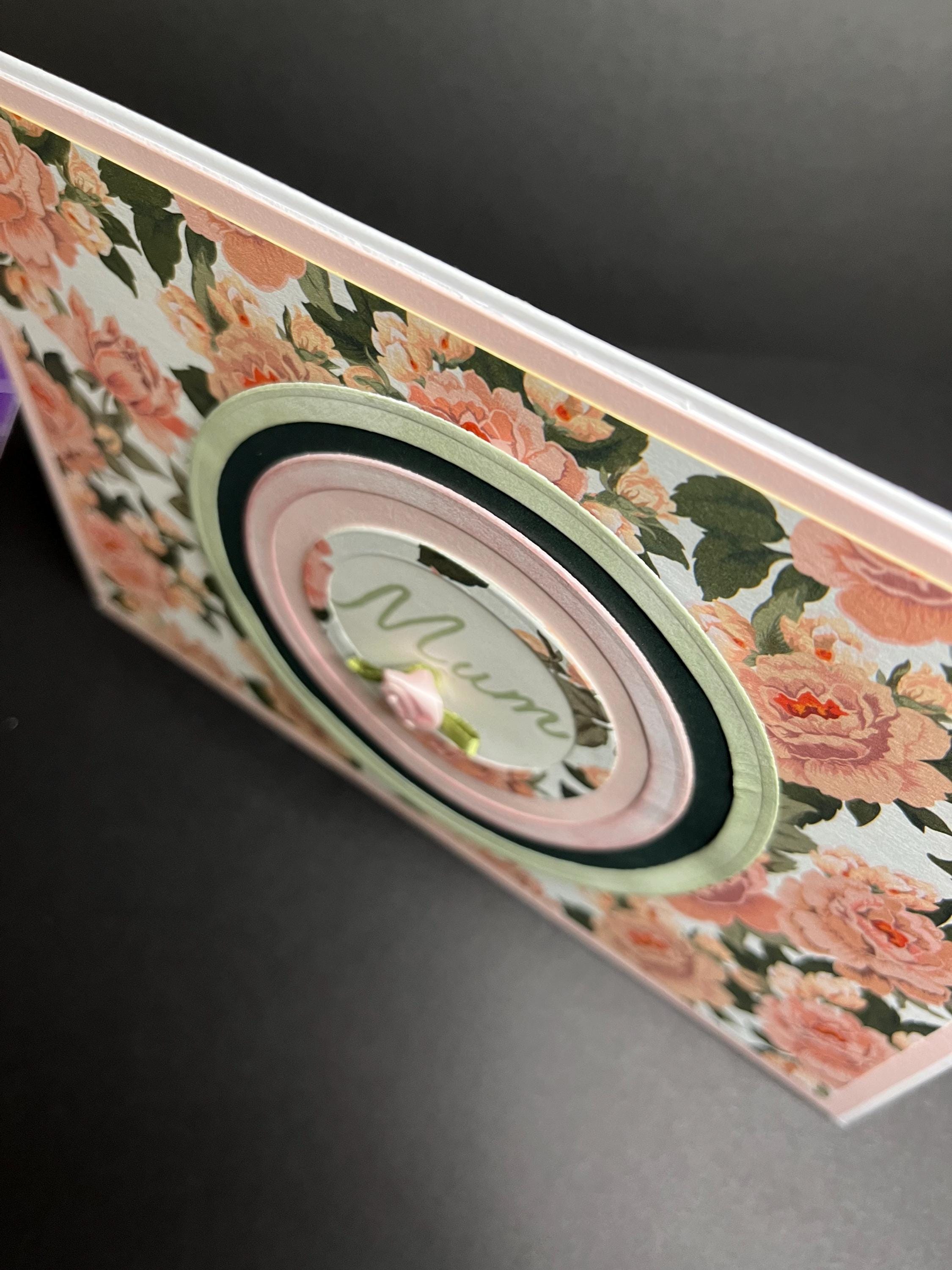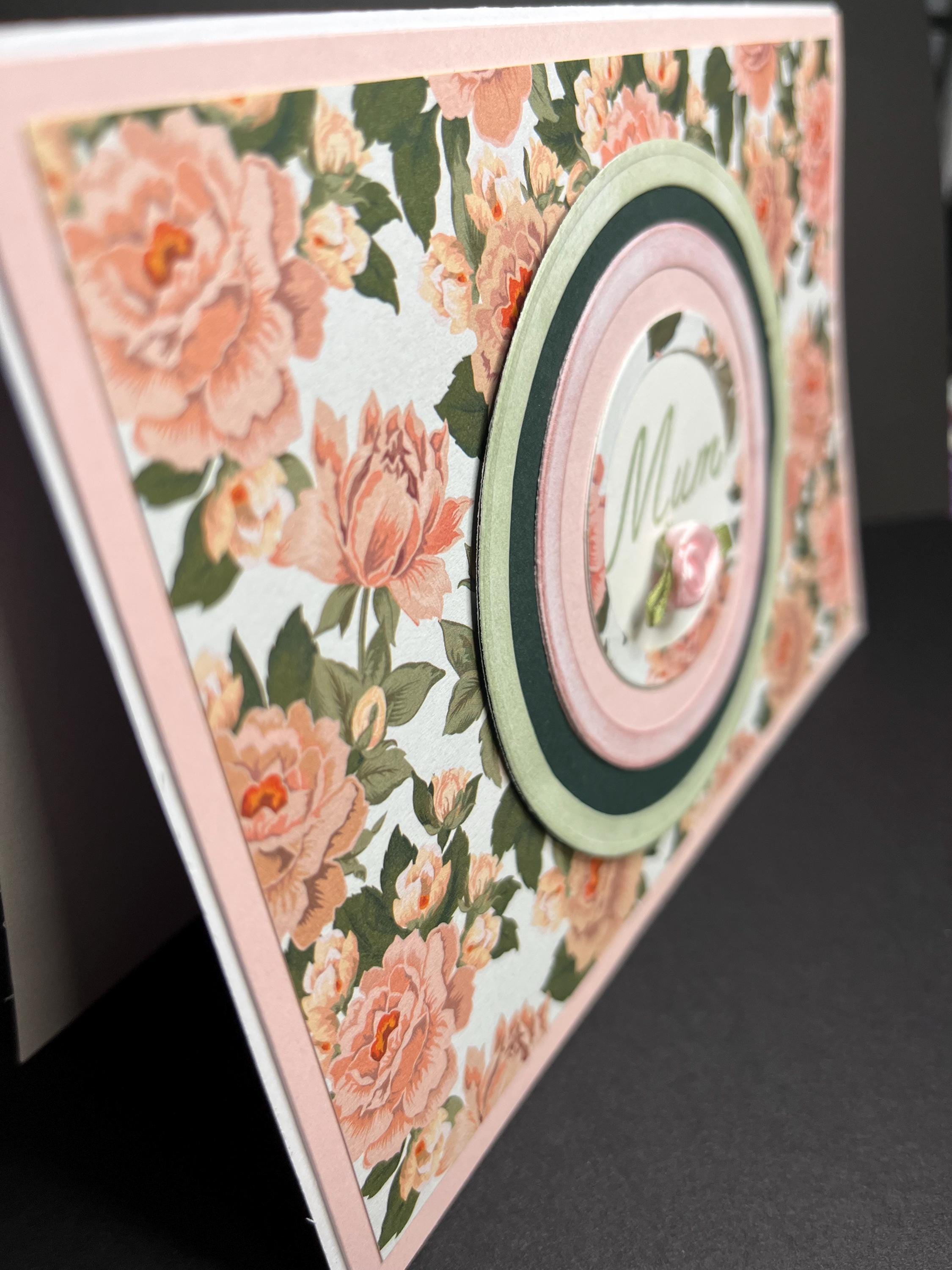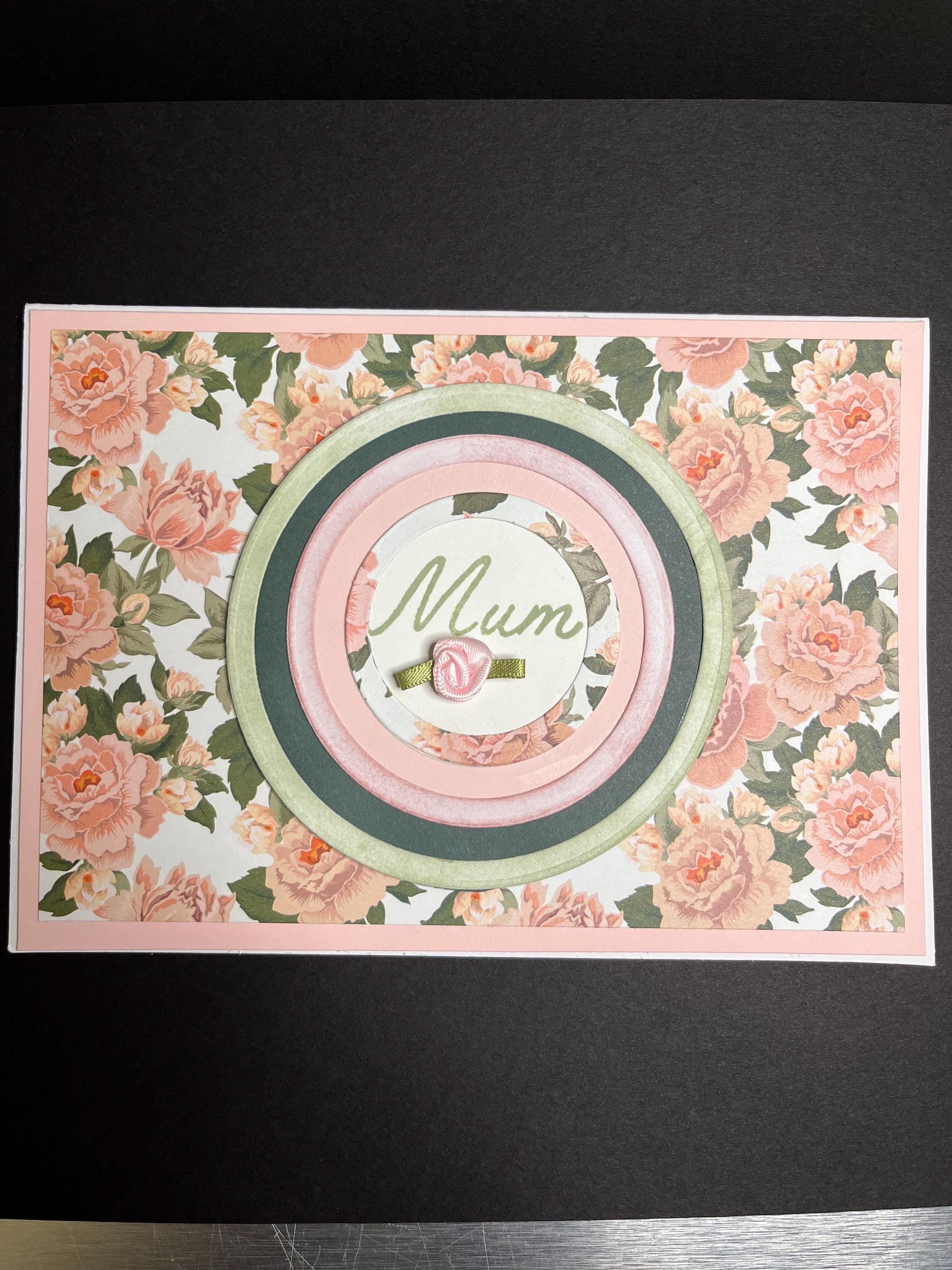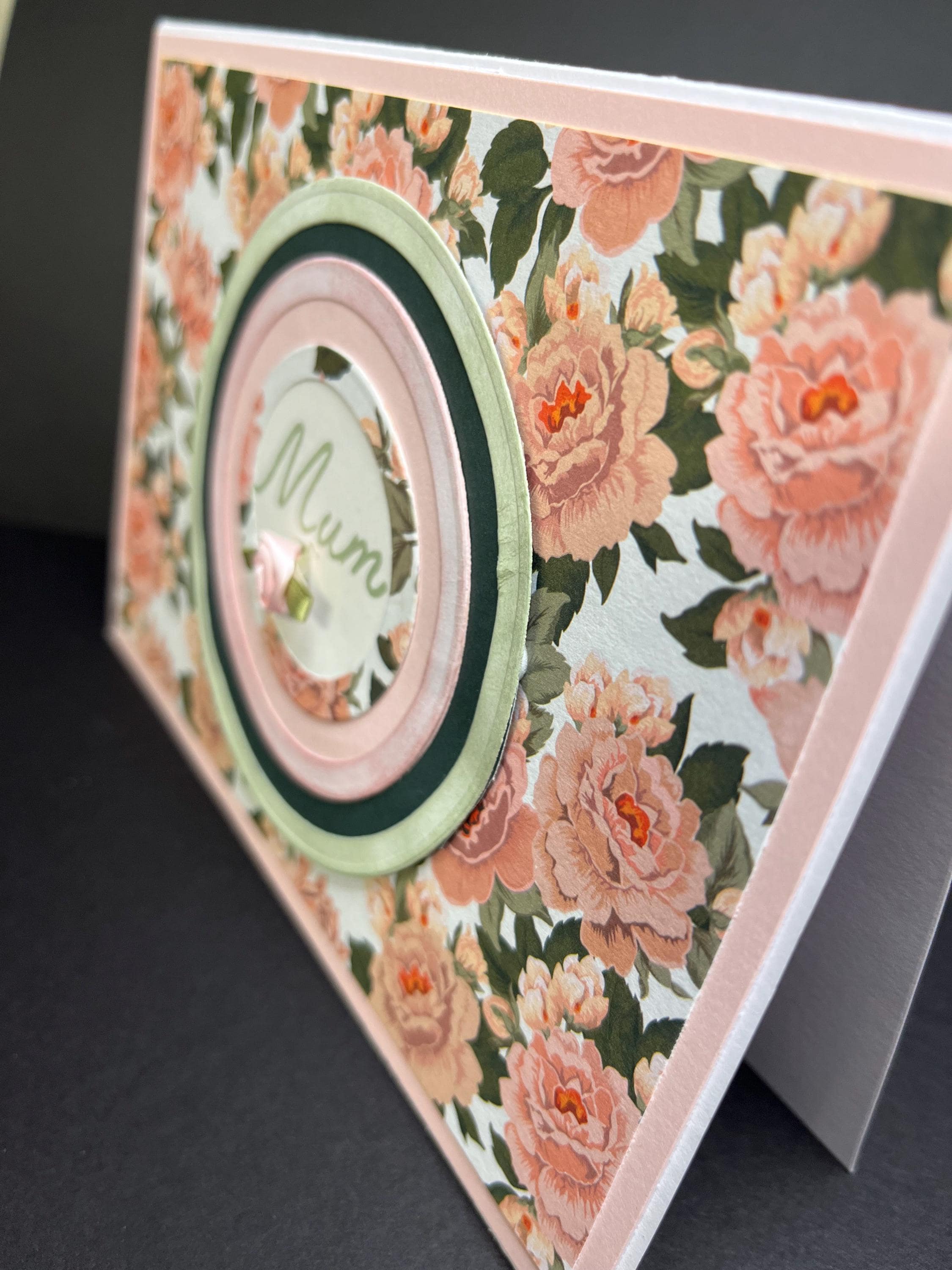 I used Tim Holtz distress ink colours Victorian velvet and bundled sage for two of the circles and bundled sage for the stamped Mum. Also added one pink silk rose.