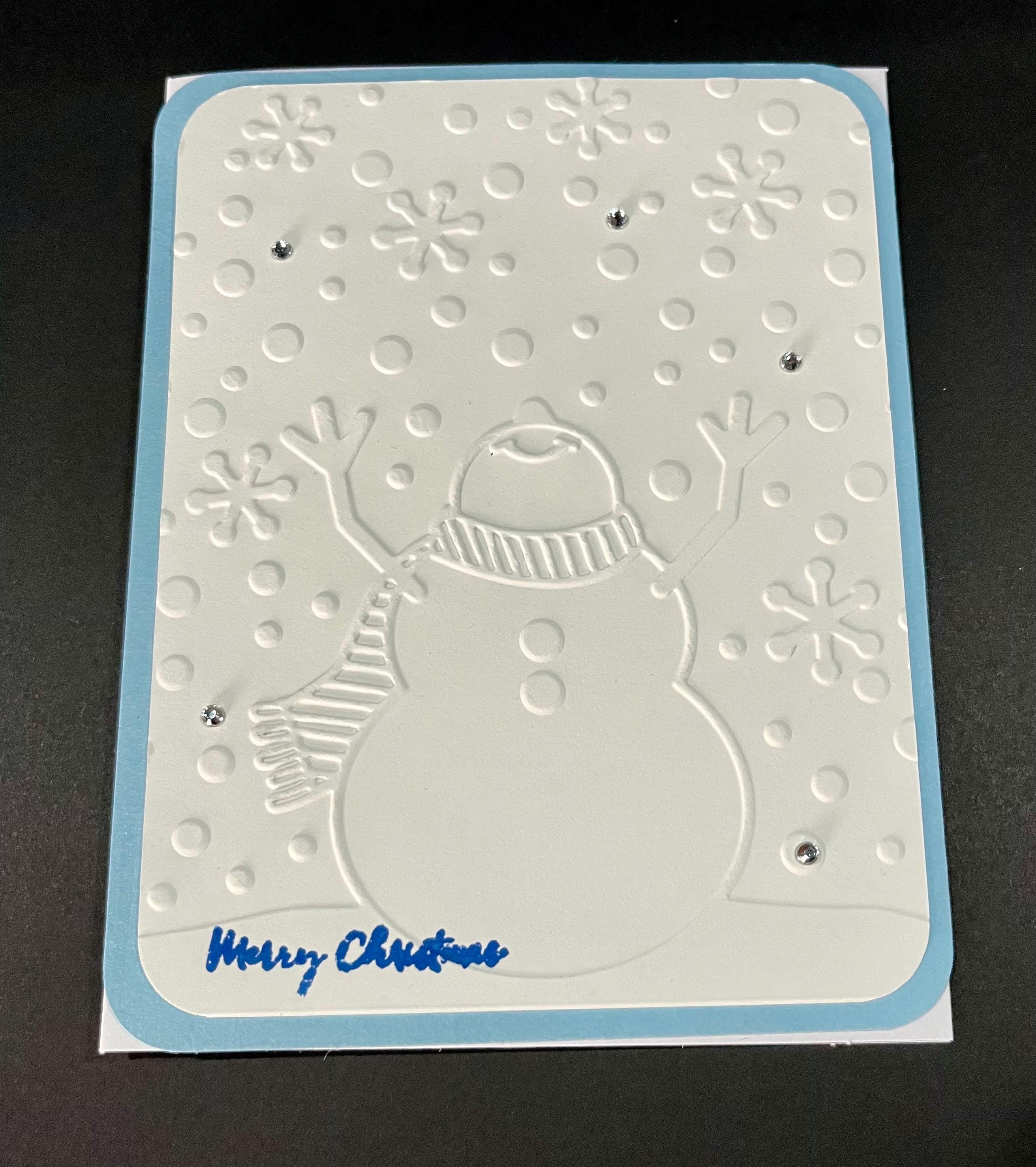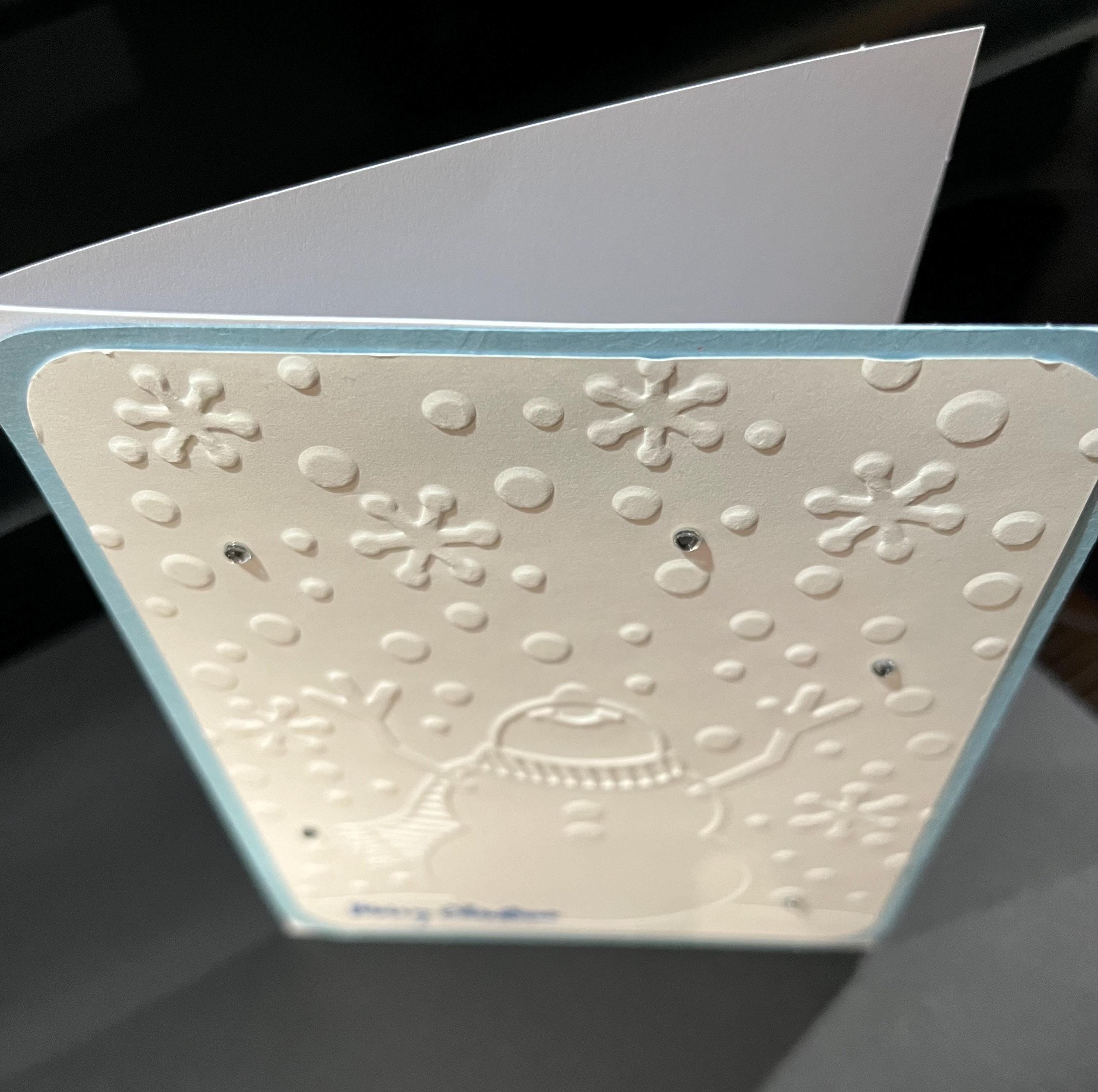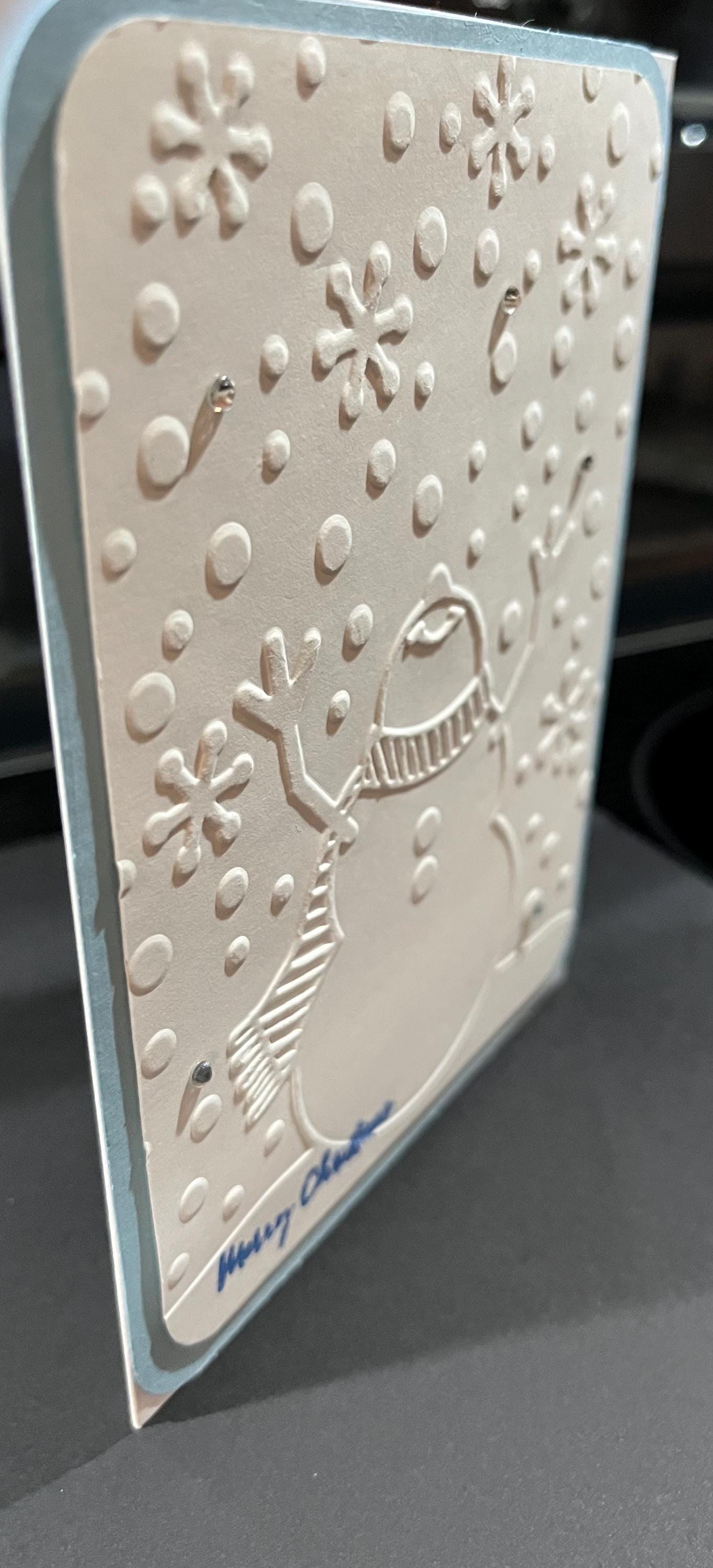 Using an embossing folder to create the image of the snowman enjoying and catching the snowflakes.☺️☺️