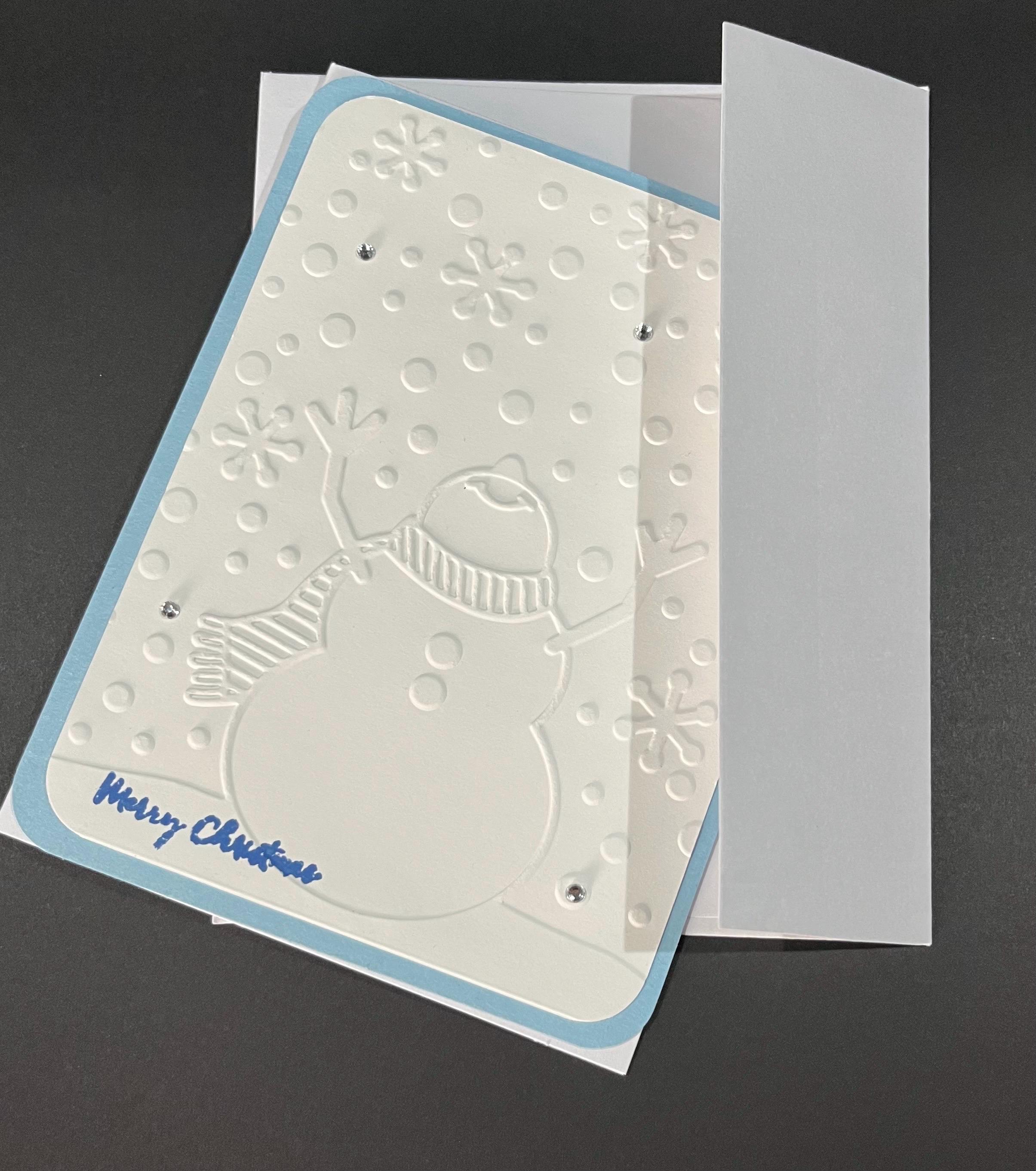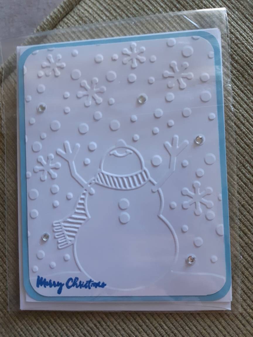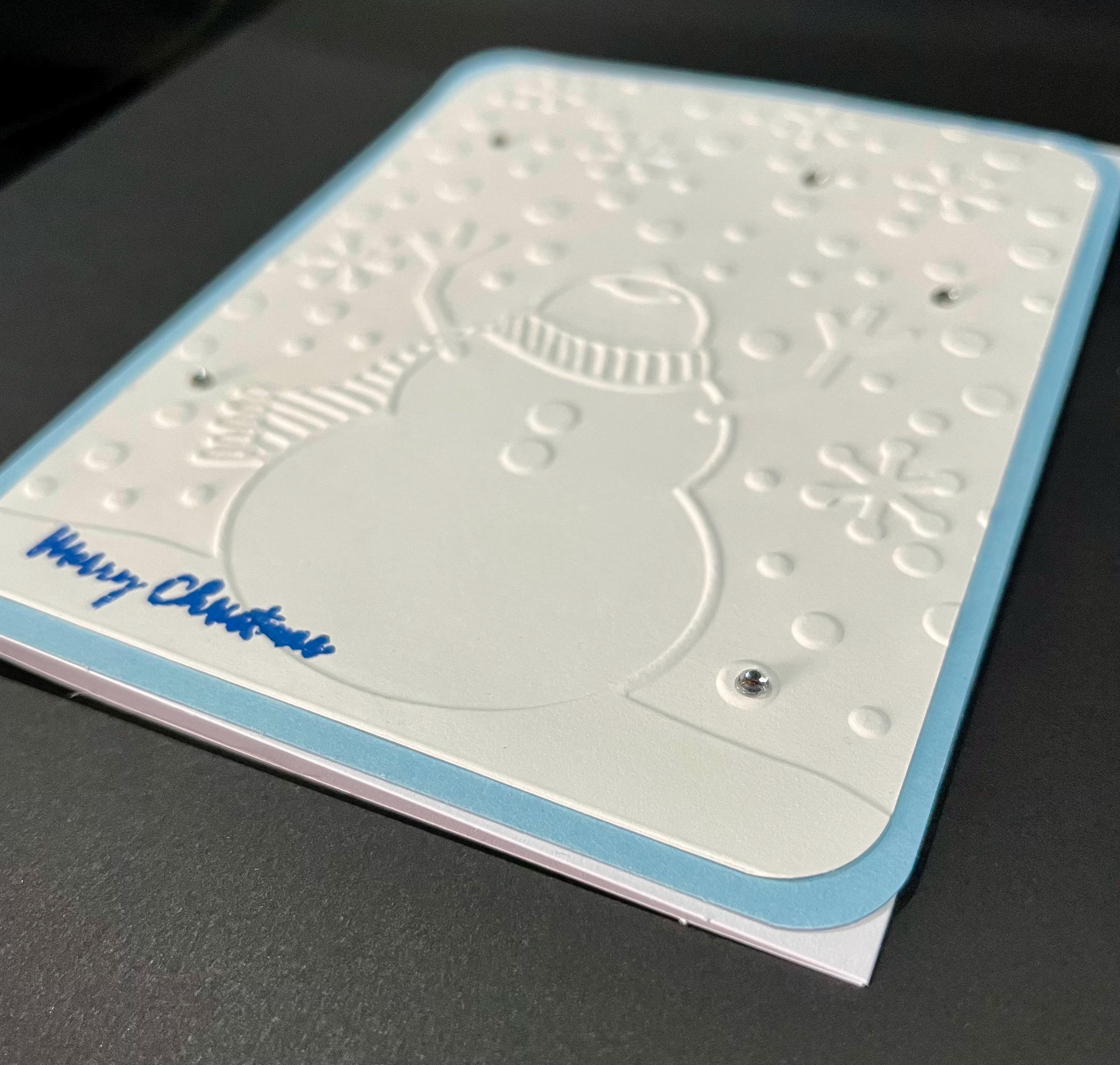 Using an embossing folder to create the image of the snowman enjoying and catching the snowflakes.☺️☺️