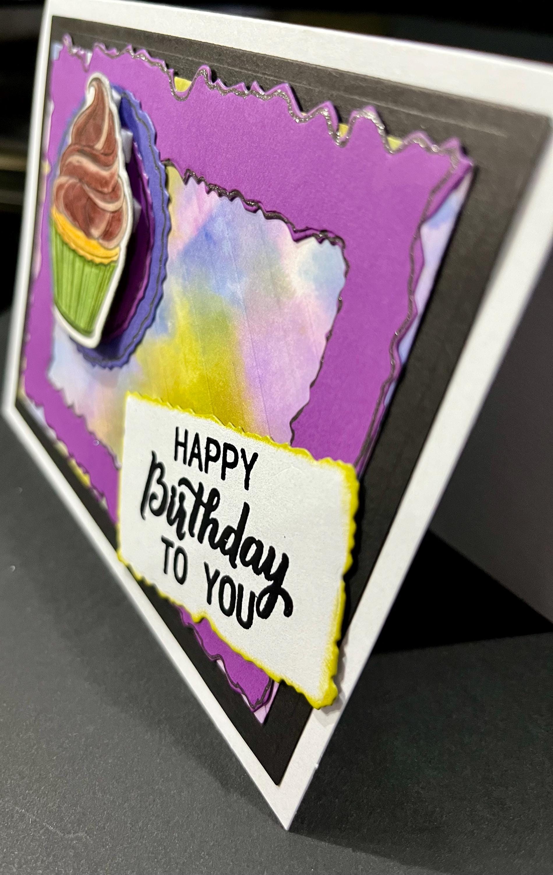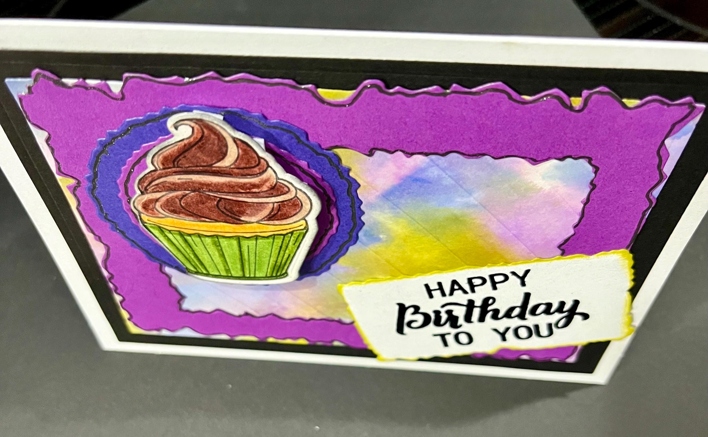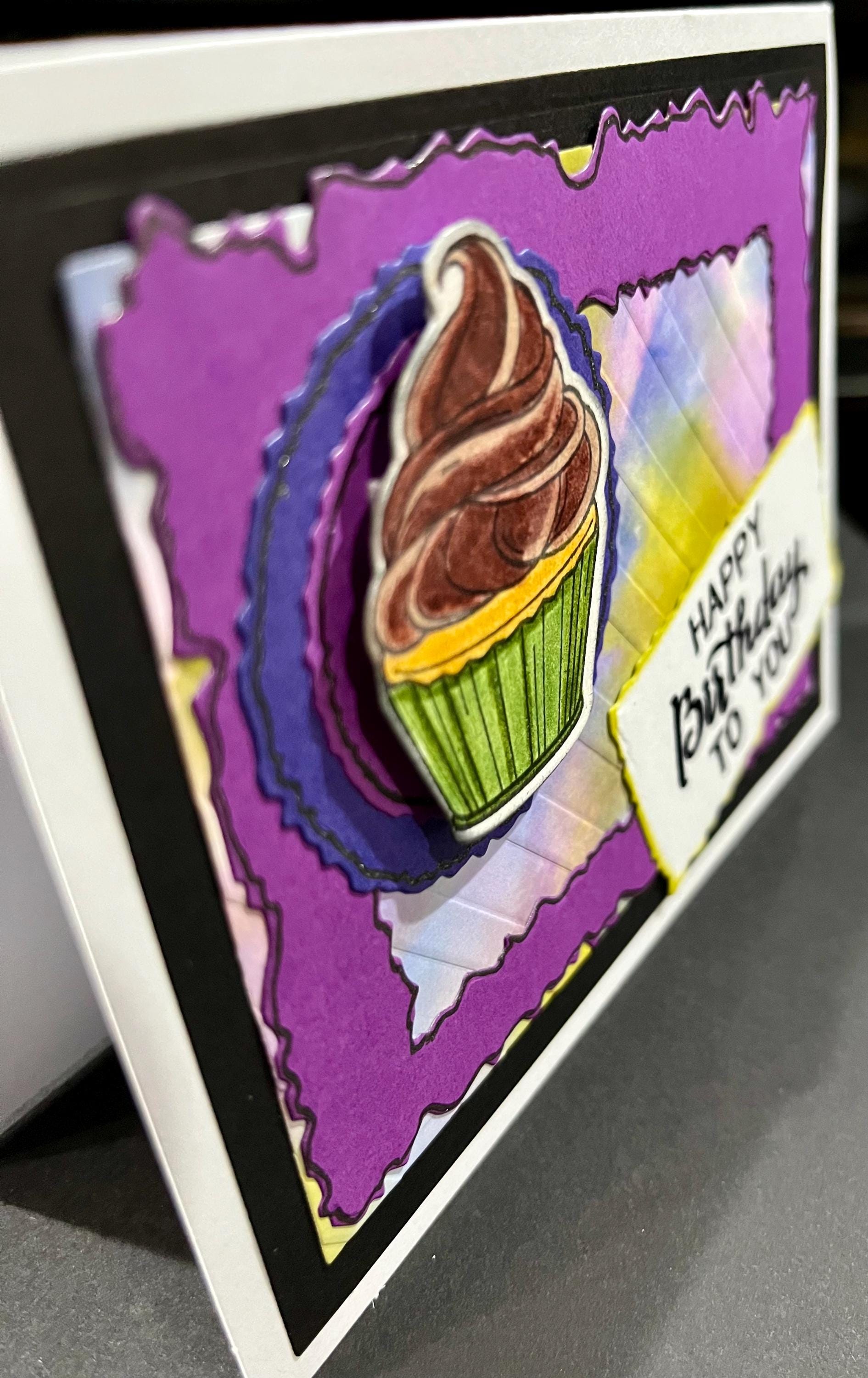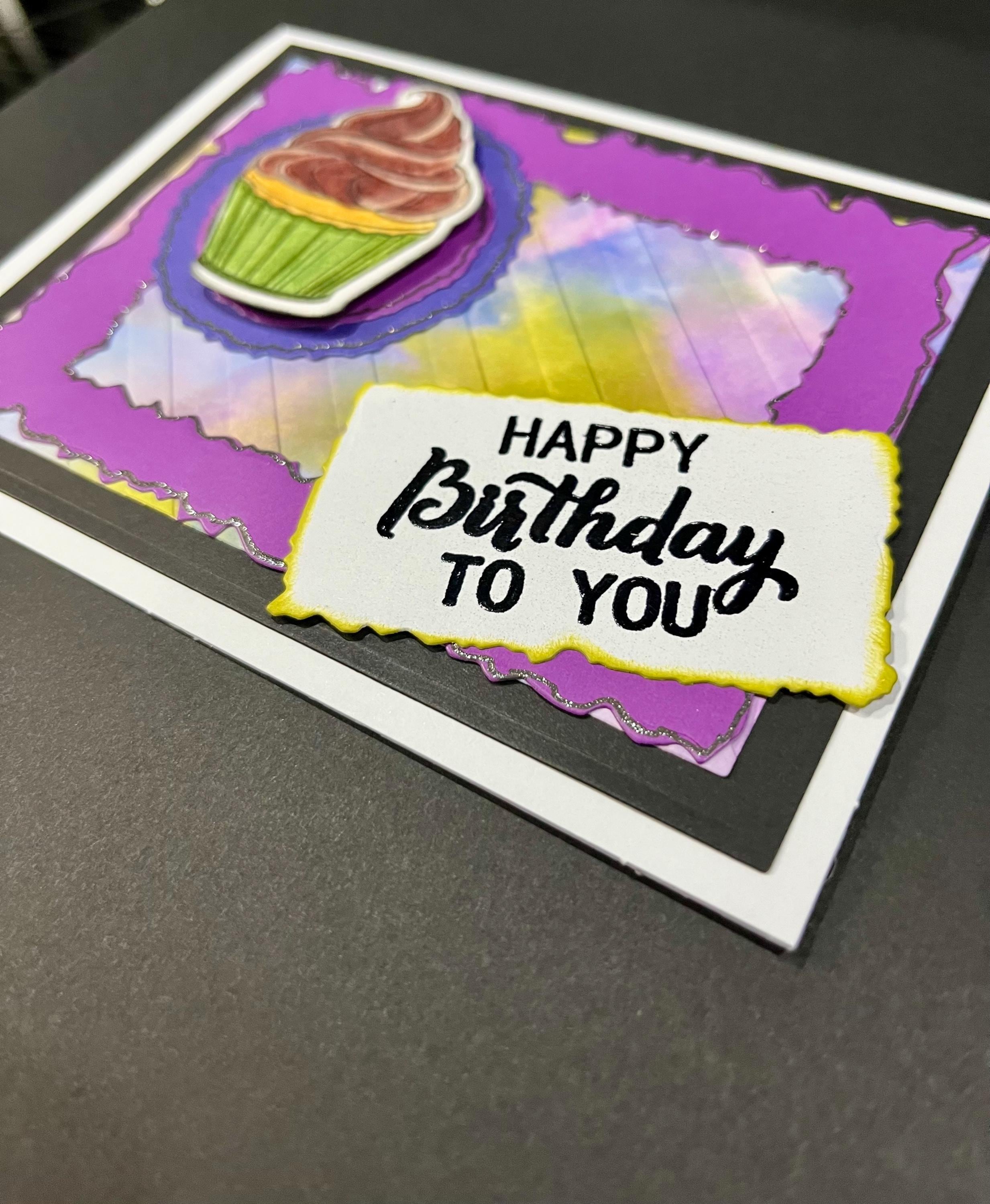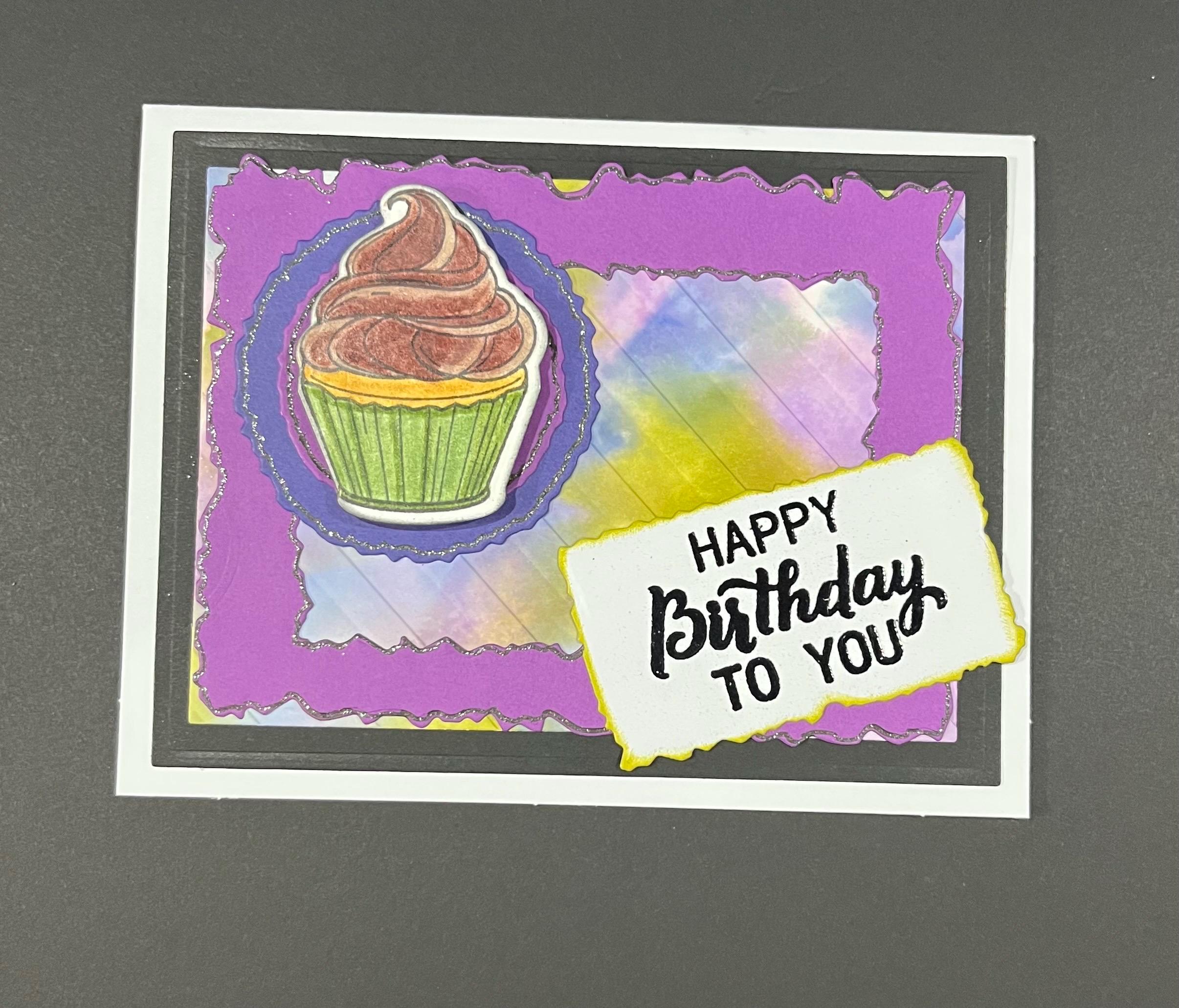 The cupcake I stamped,die cut, and coloured with pencil crayons.🥳🥳
