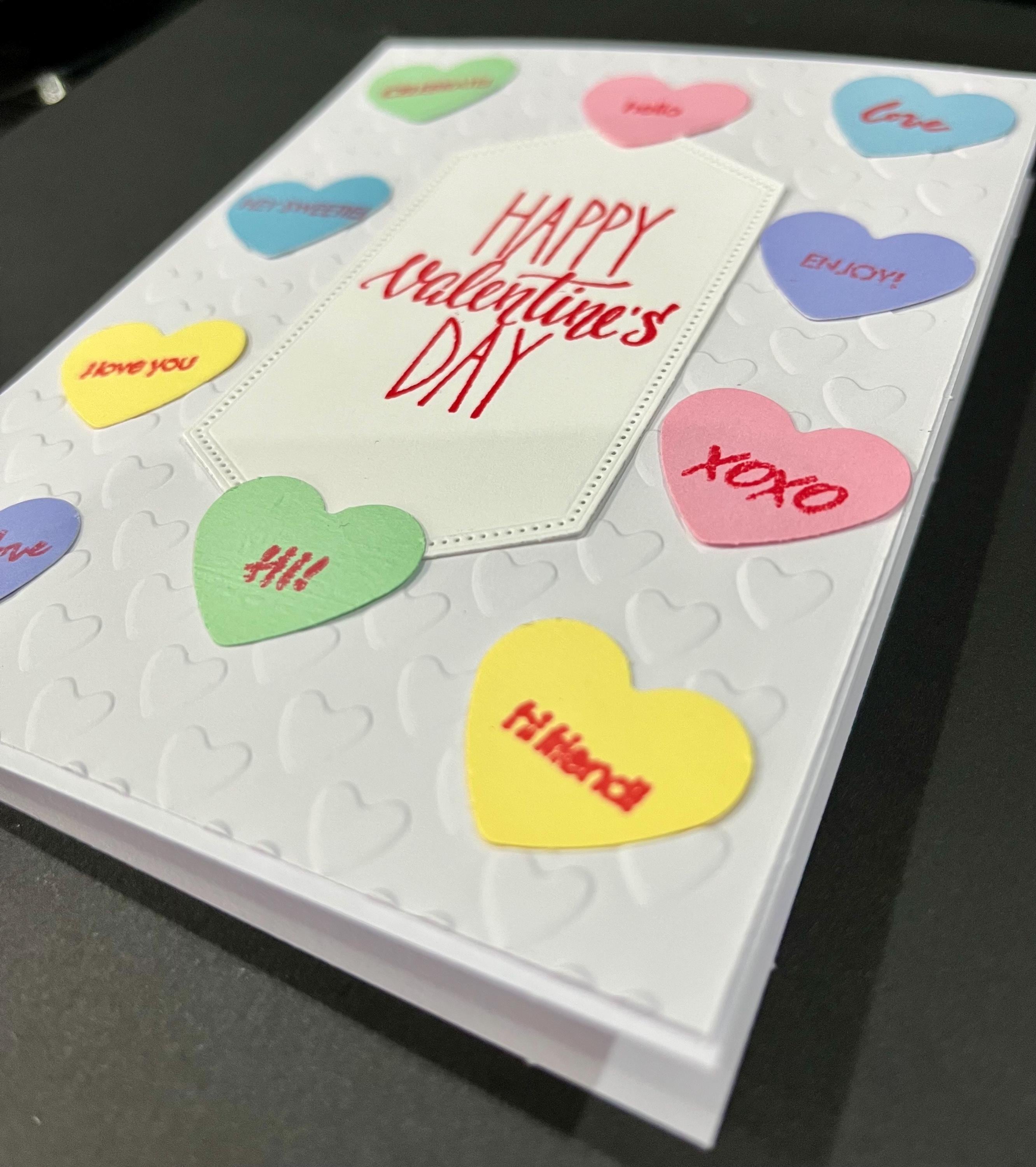 The hearts contain a stamped saying on each of them. I am getting this idea from the valentine candy, Conversational Hearts.❤️❤️