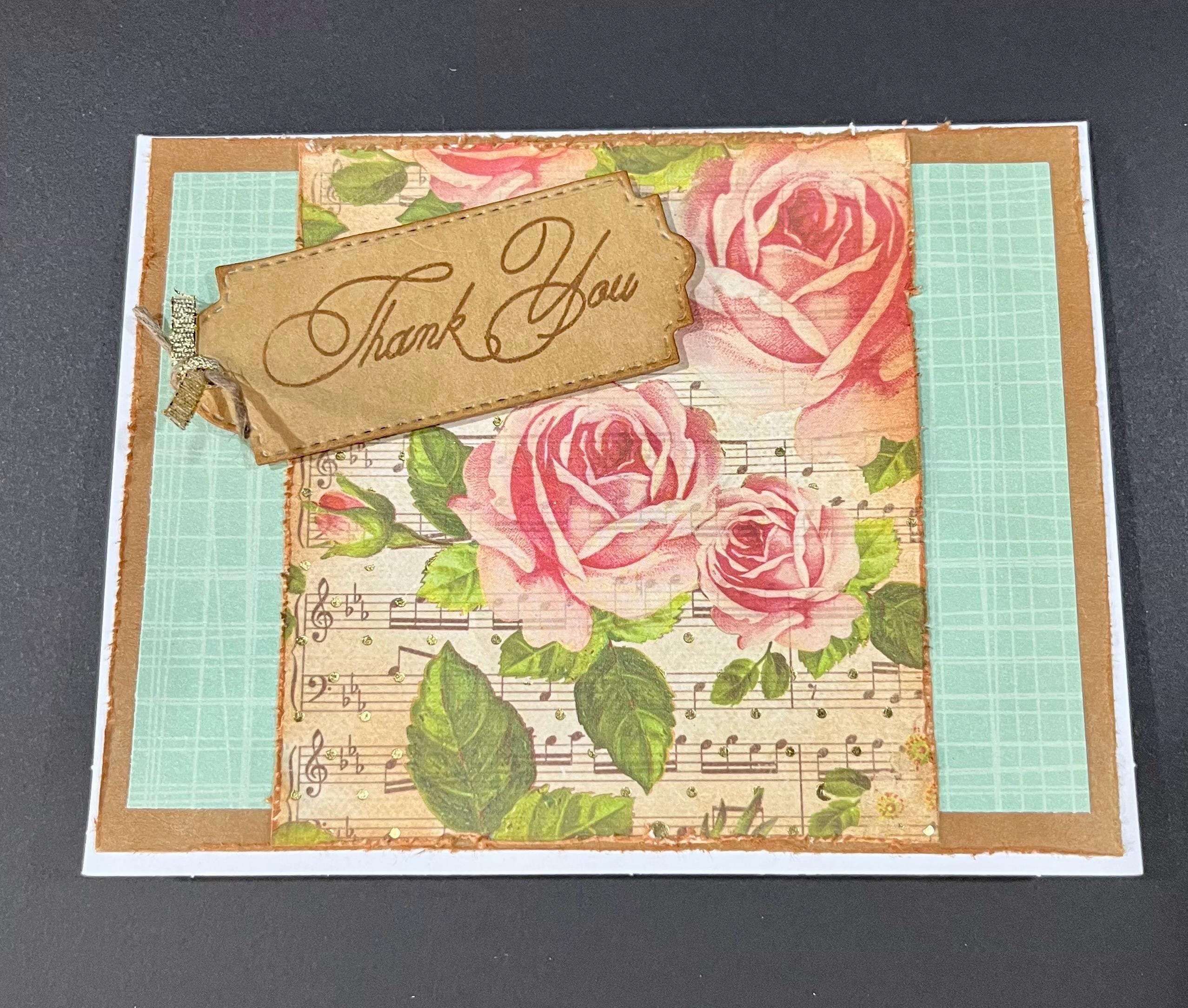 The next pattern paper is with roses, and gold foil musical notes. The edges have been distress (frayed) and also coloured with distress ink tea dye.๐๐น