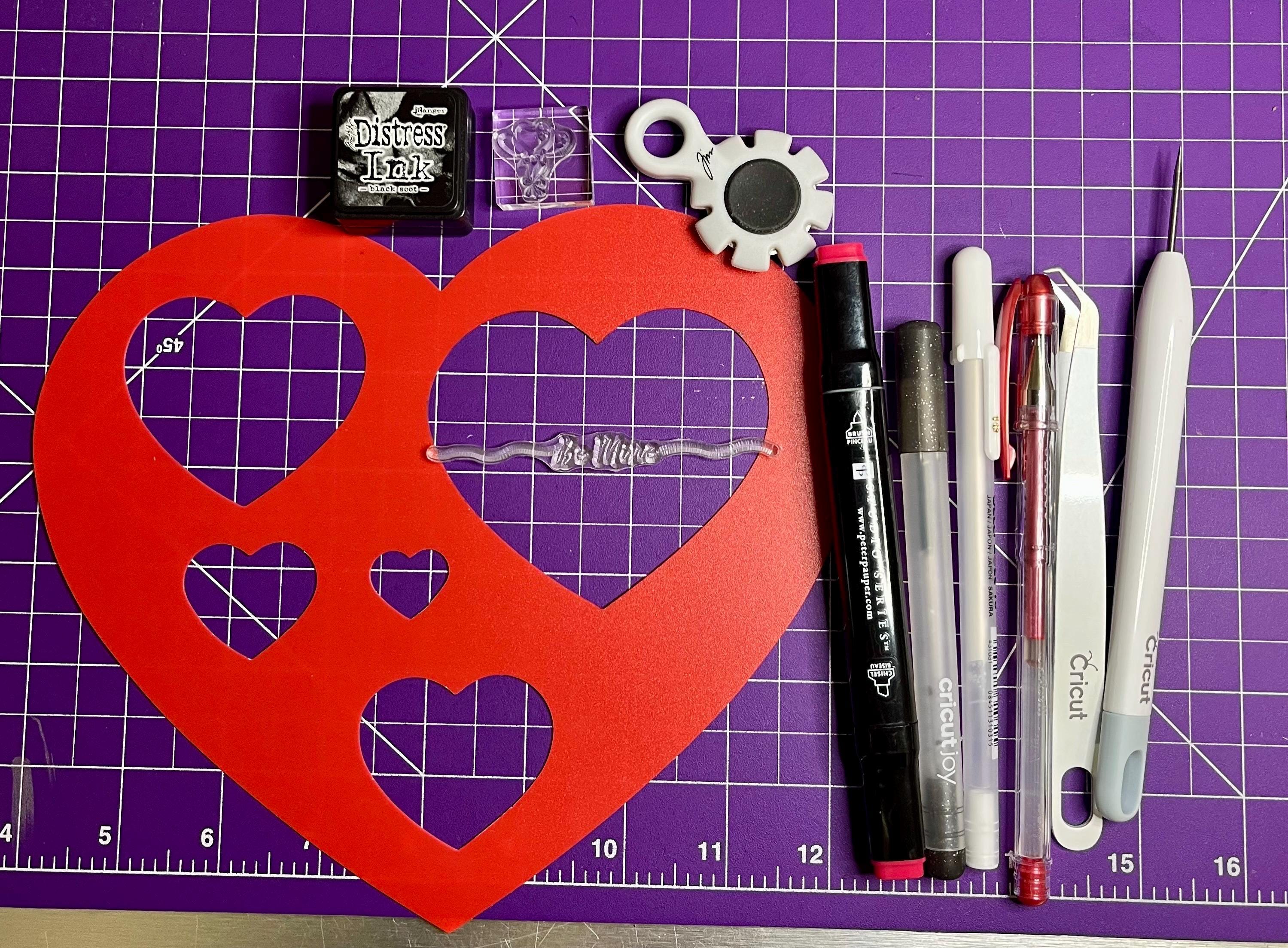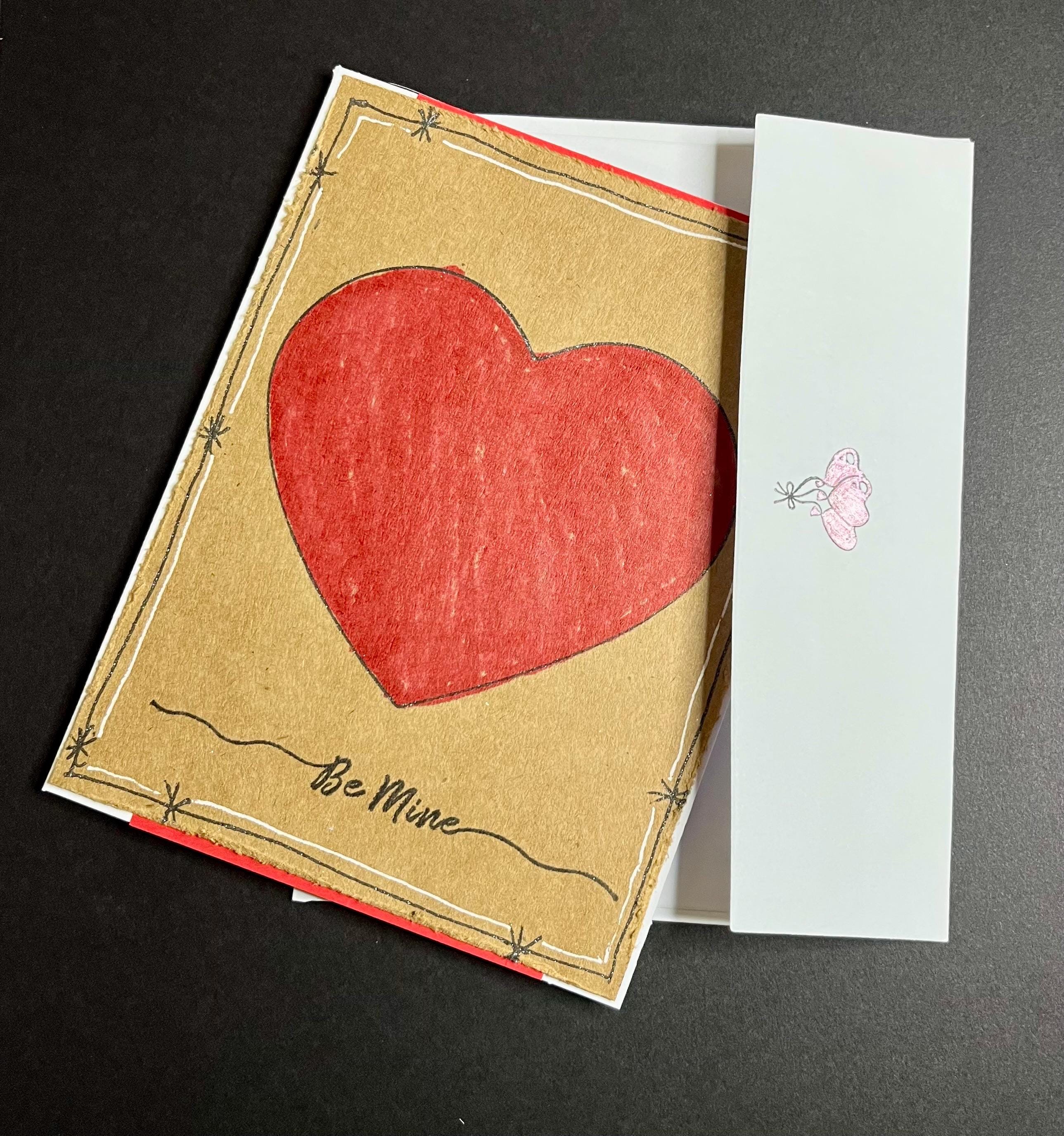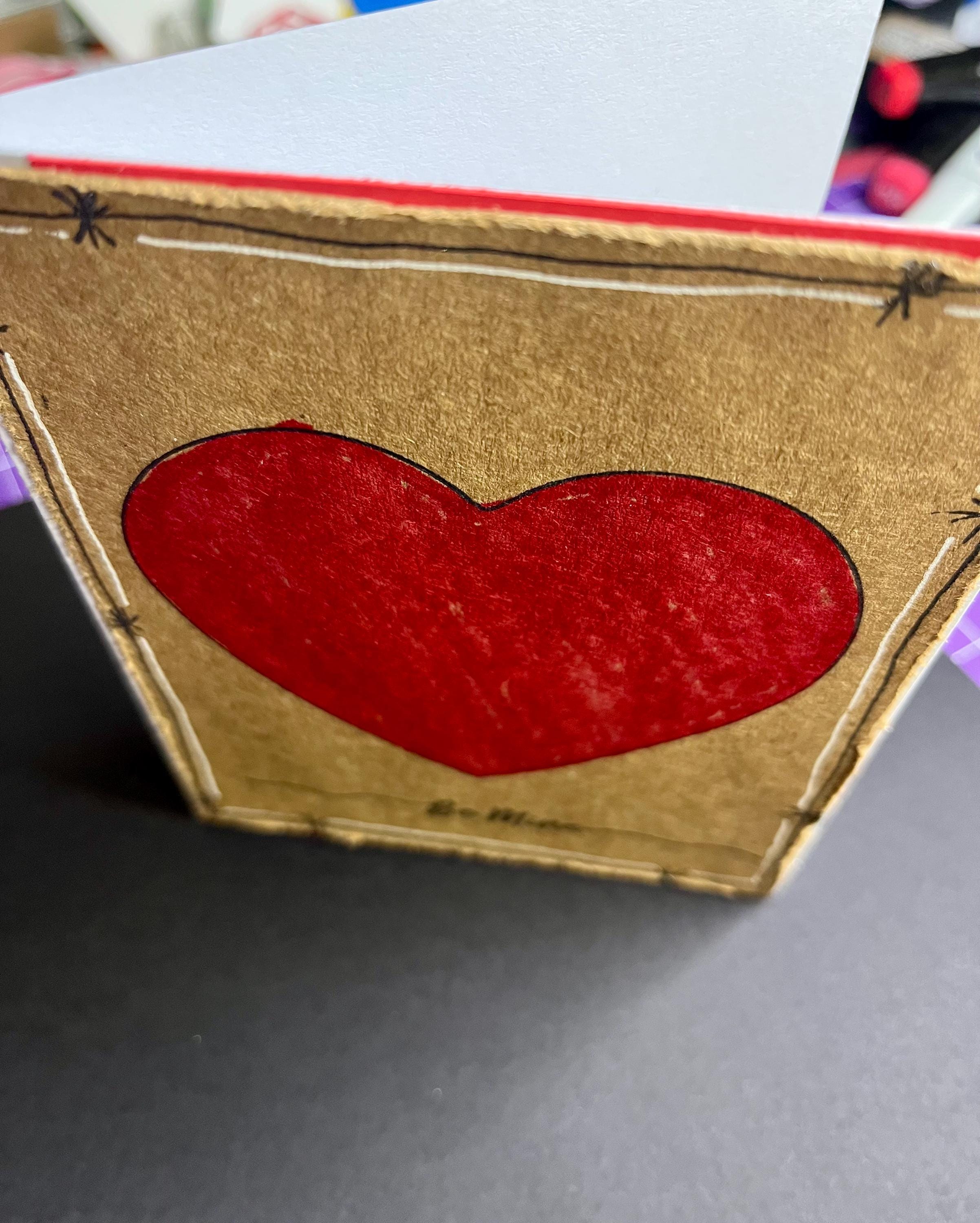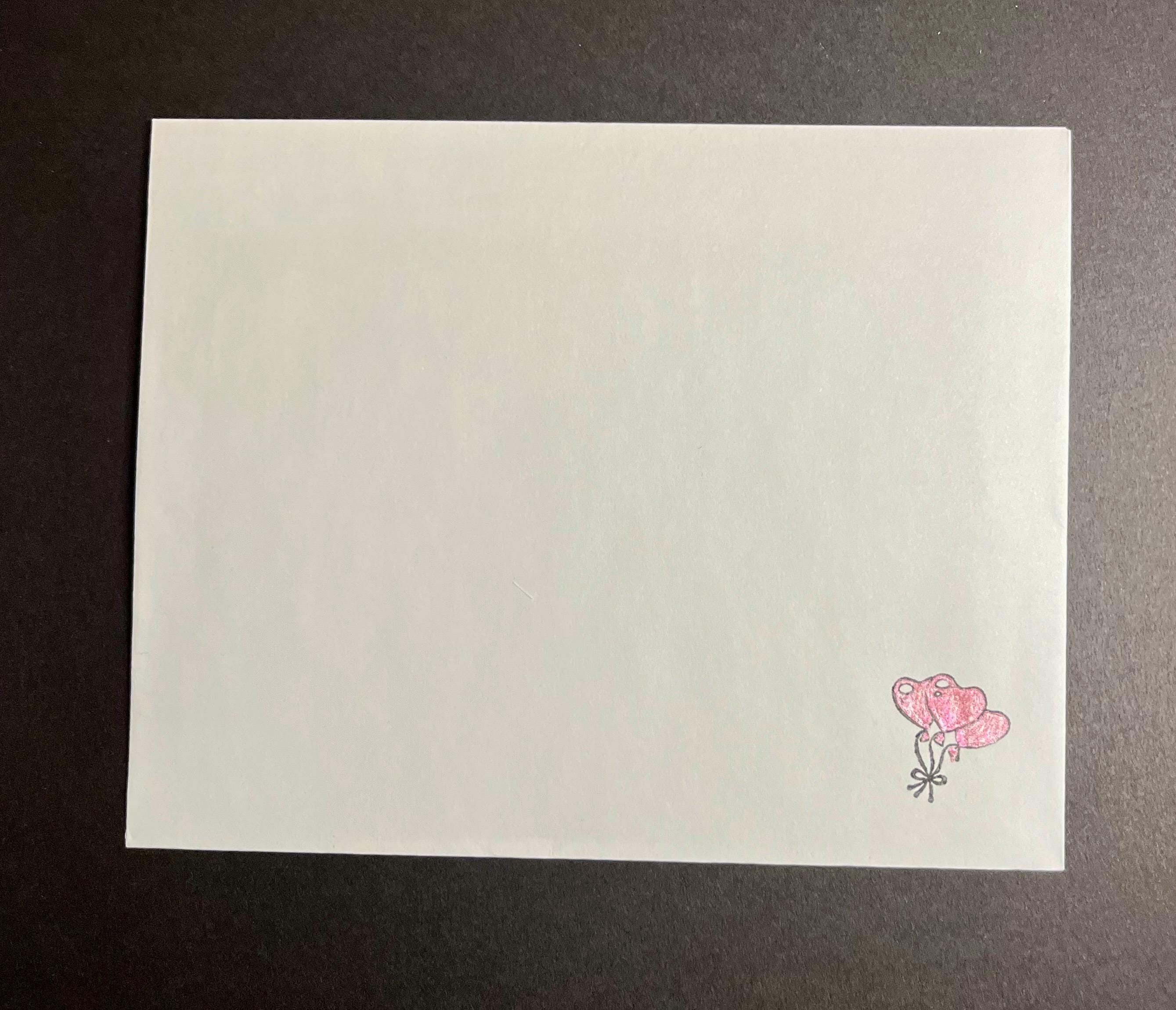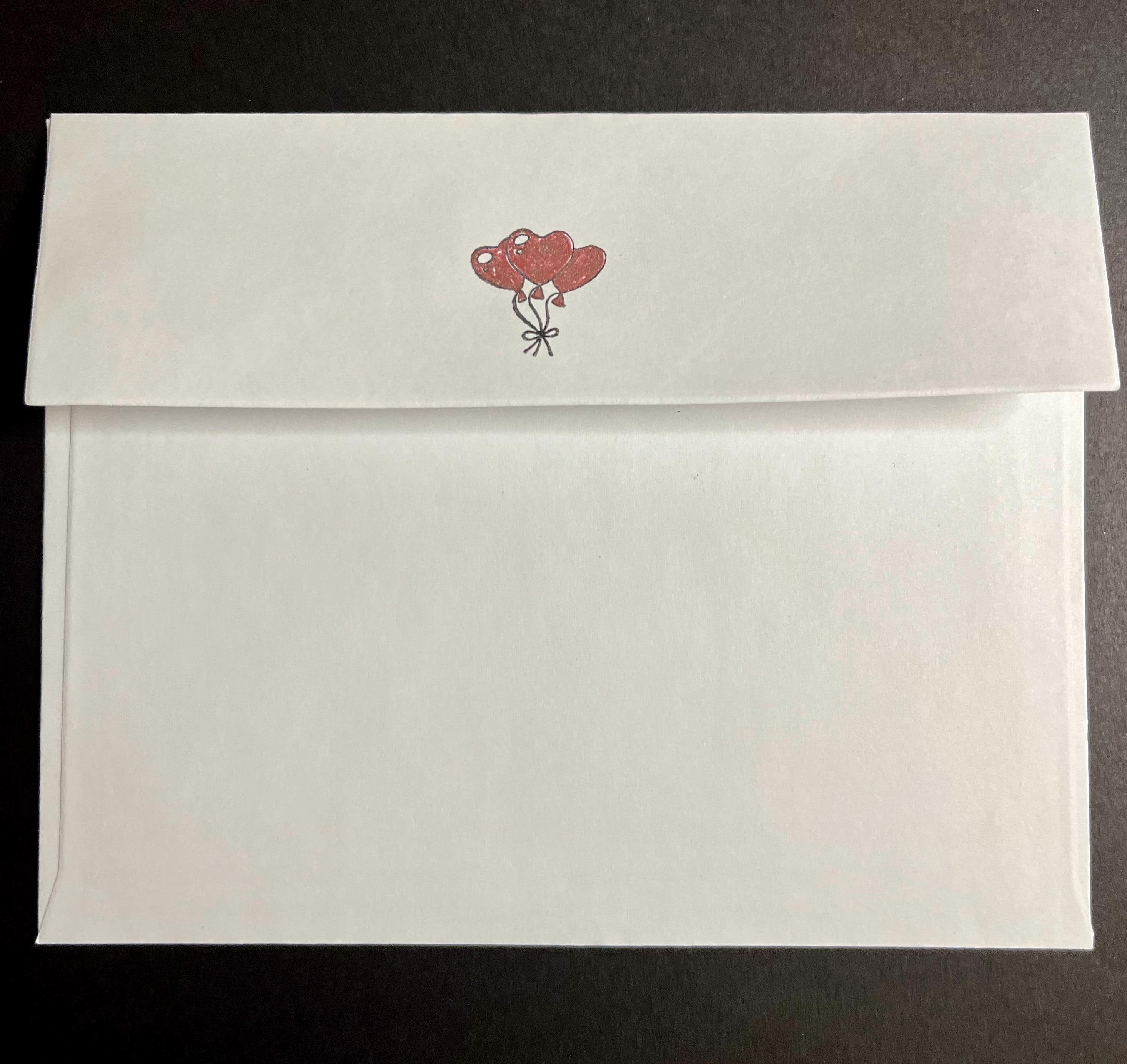The envelope has heart balloons stamped on the back and on the front corner. I coloured then with a red metallic gel pen.