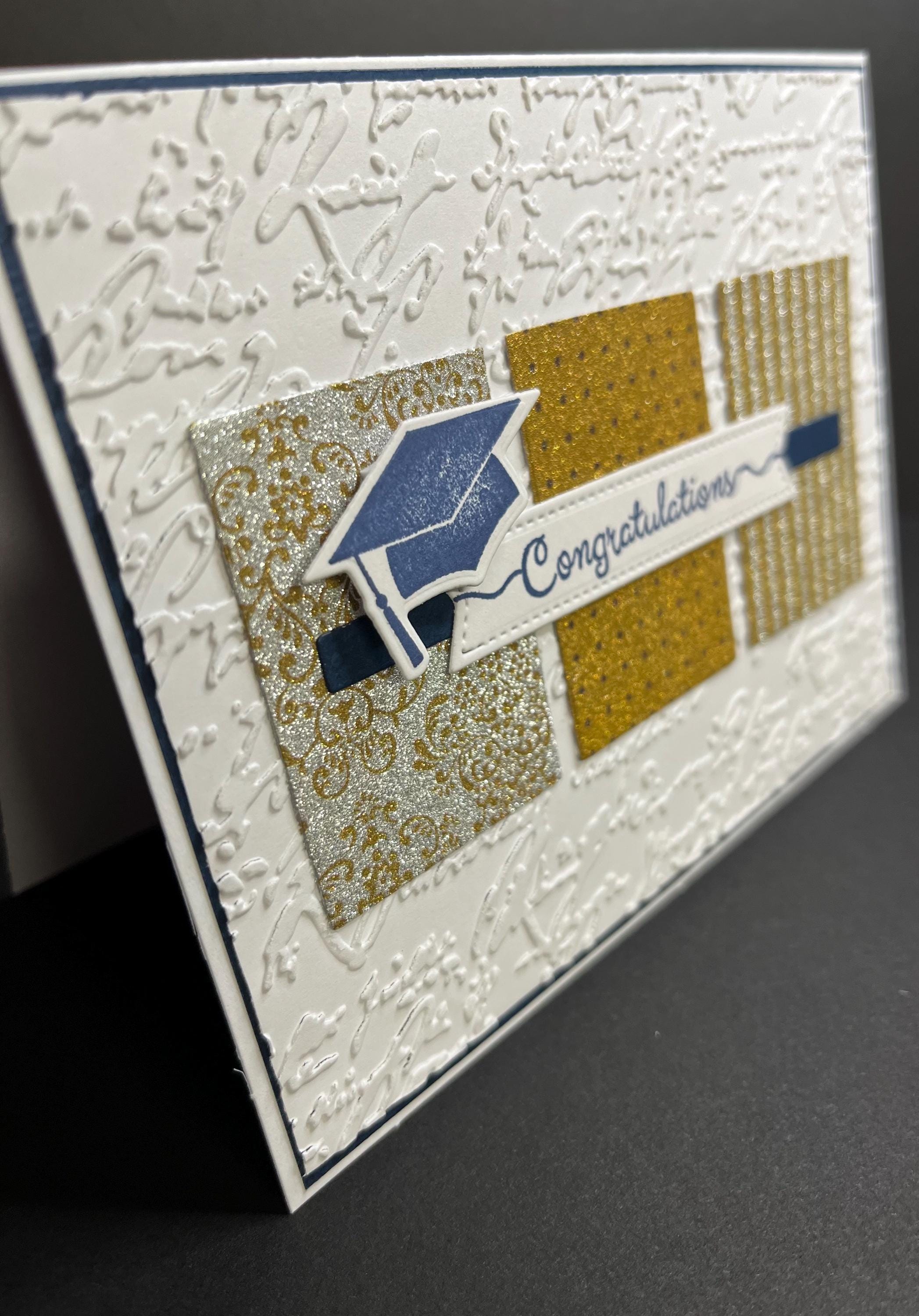The graduation cap , was made by usuing a stamp, chipped sapphire distress ink and a die cut.🎓