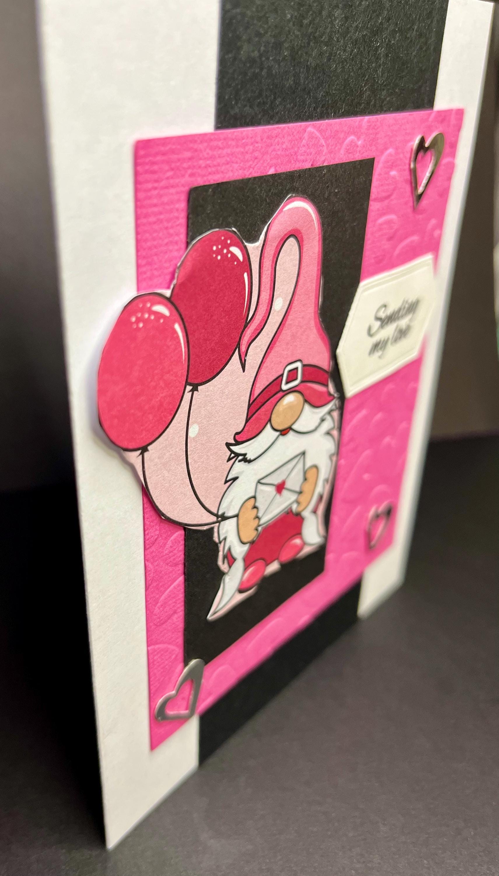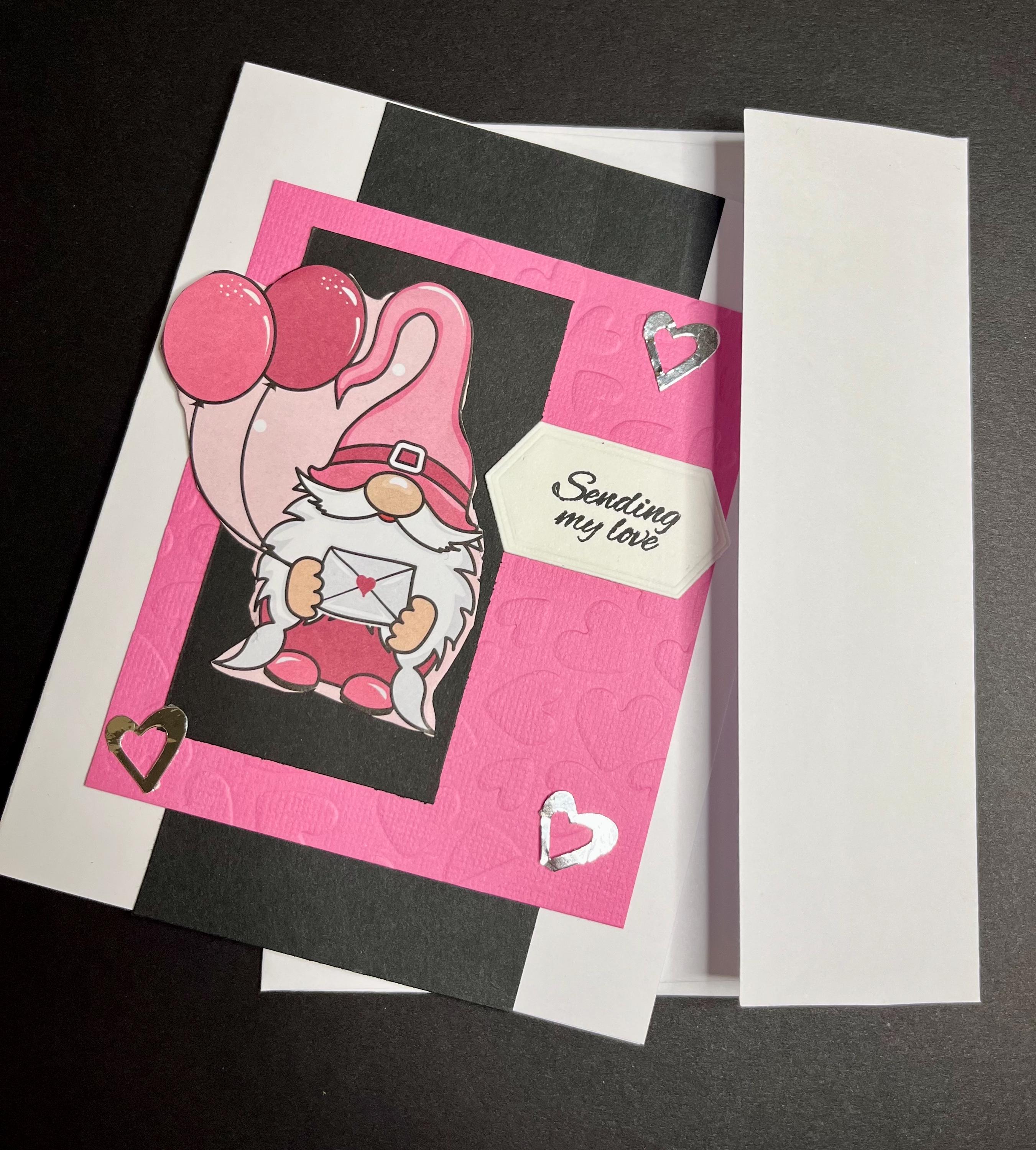 I then added another rectangle in black card stock , then the gnome place on top. The gnome was fussy cut from pattern paper.💕