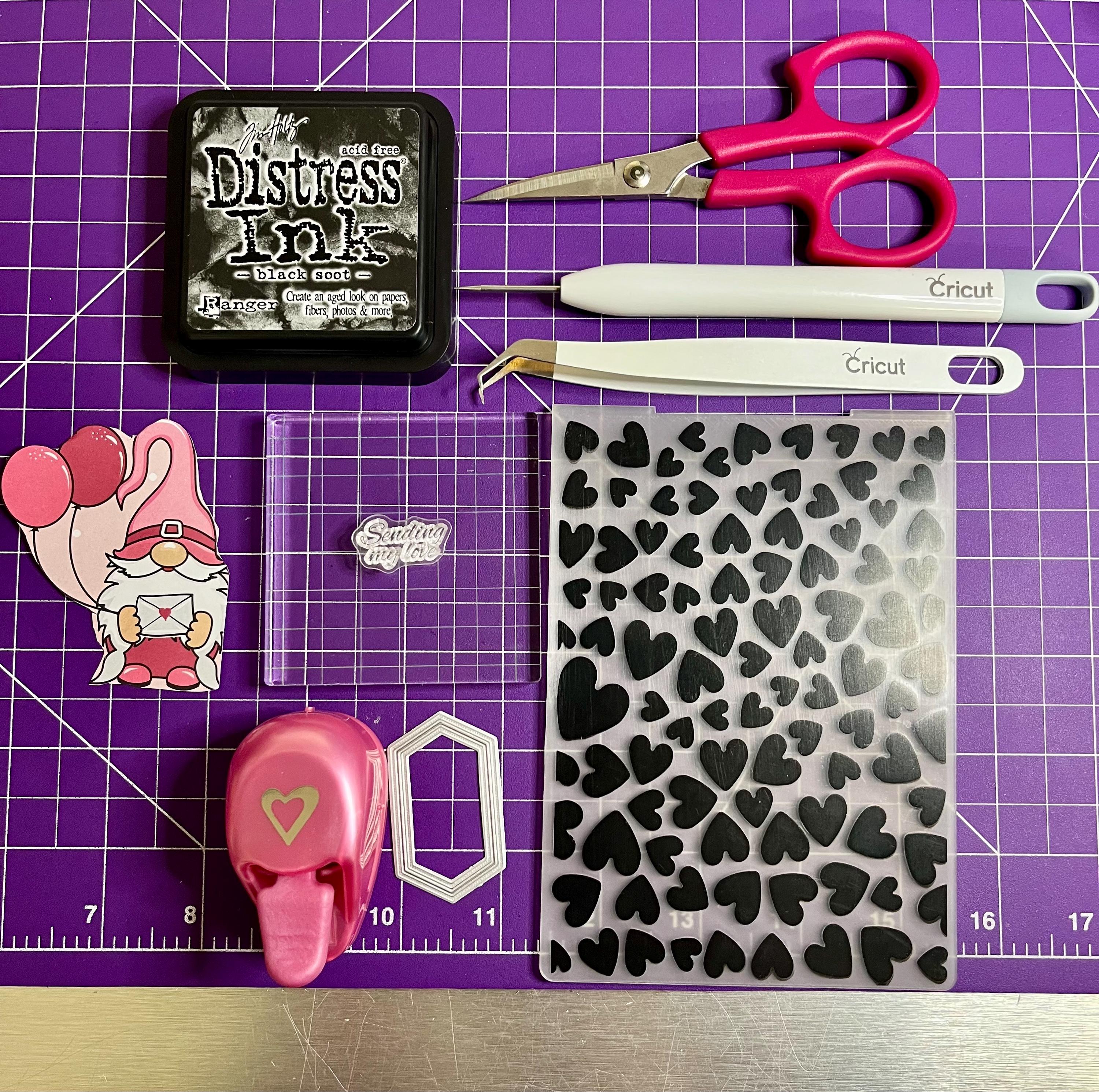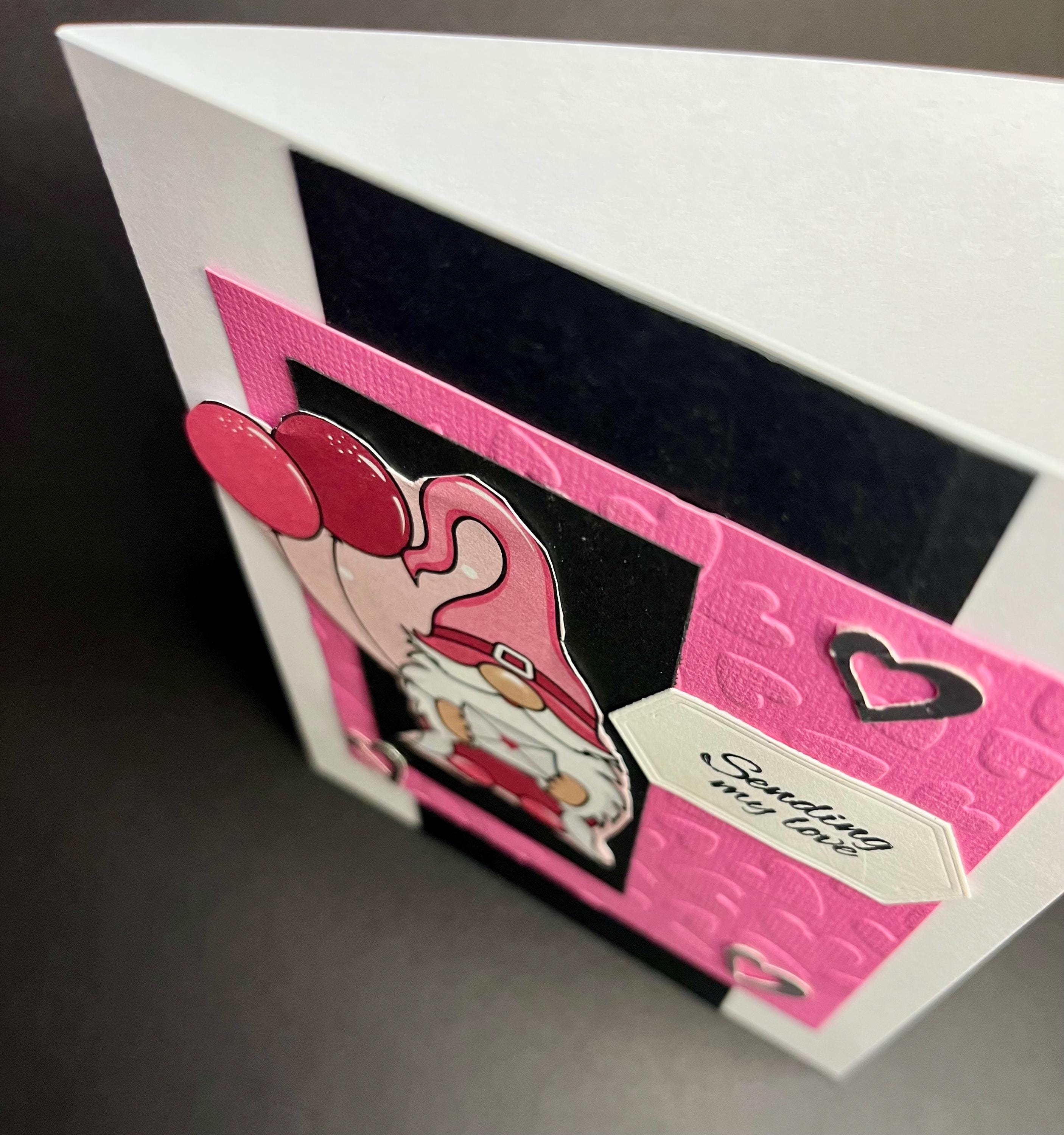 Next is pink card stock that has been embossed with hearts using a folder.💕
