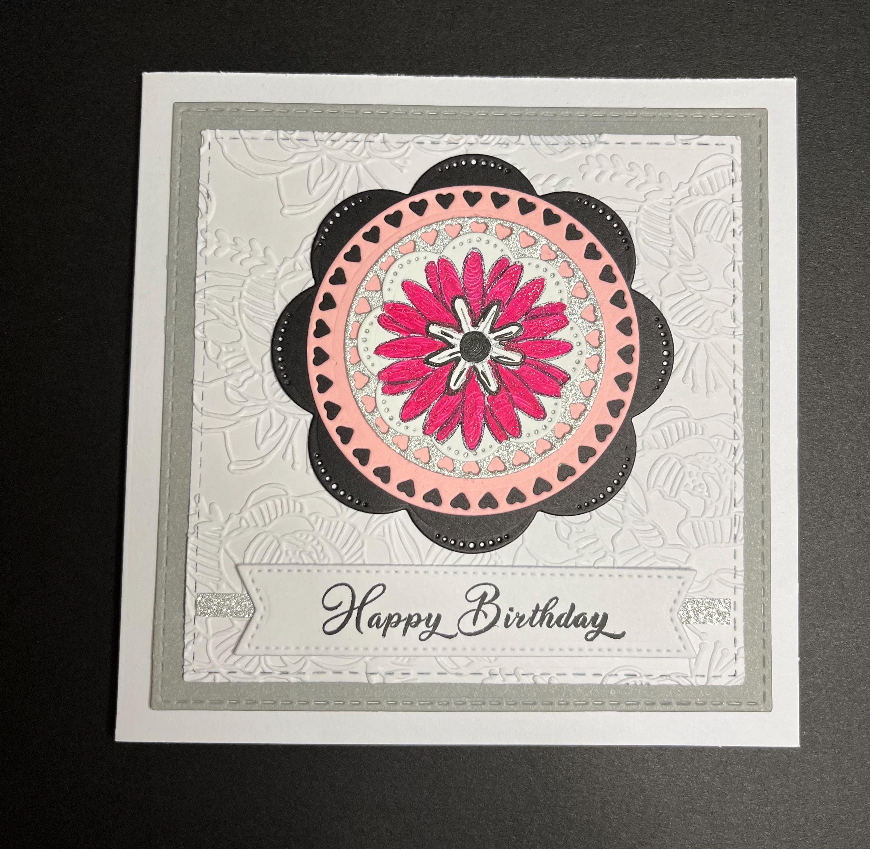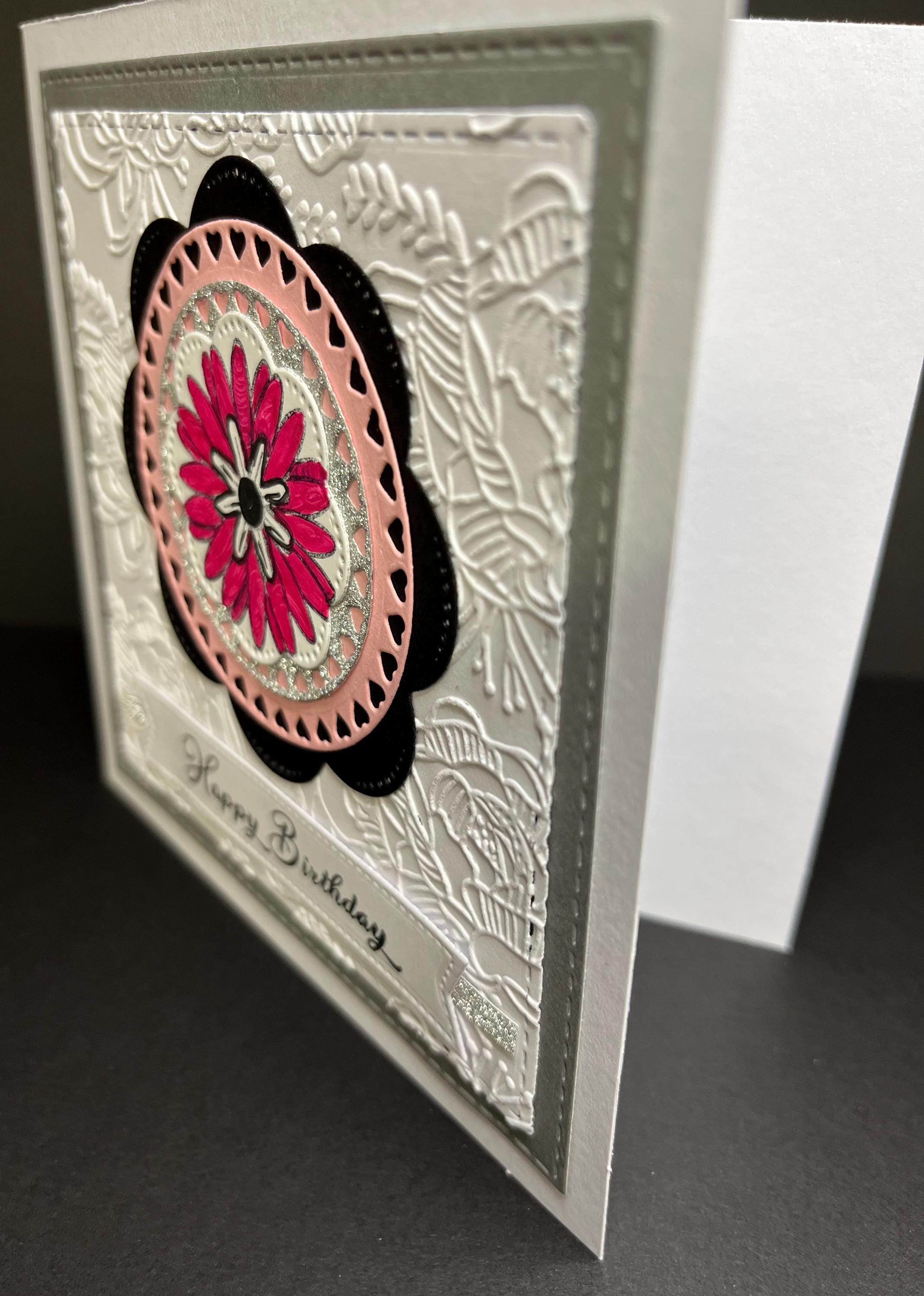 The stamped flower in the middle was coloured with hot pink glitter gel pen.๐๐